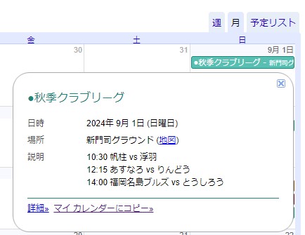 特に長期にわたるリーグ戦などは、様々な事情で試合の予定が突然変更され、カレンダーの更新が間に合わない場合もありますので了承ください。